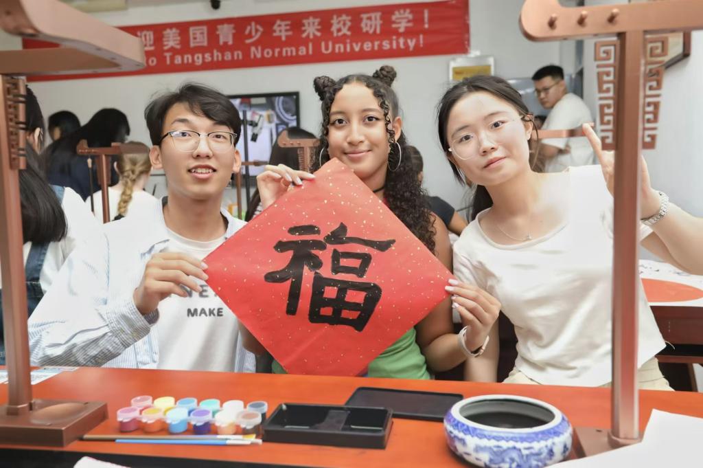 學校為來訪的美國大學生們安排了各種文化體驗活動,包括學習交流論語、武術、書法、繪畫、評劇等中國傳統文化,欣賞唐山皮影戲,體驗陶瓷制作、漆扇制作、非遺蠟染;深入唐山博物館、唐山工業博物館和開灤國家礦山公園了解唐山歷史和工業發展歷程;參觀唐山機器人展示體驗中心感受唐山現代科技發展;游覽唐山宴,品嘗唐山傳統美食,了解唐山風土人情。