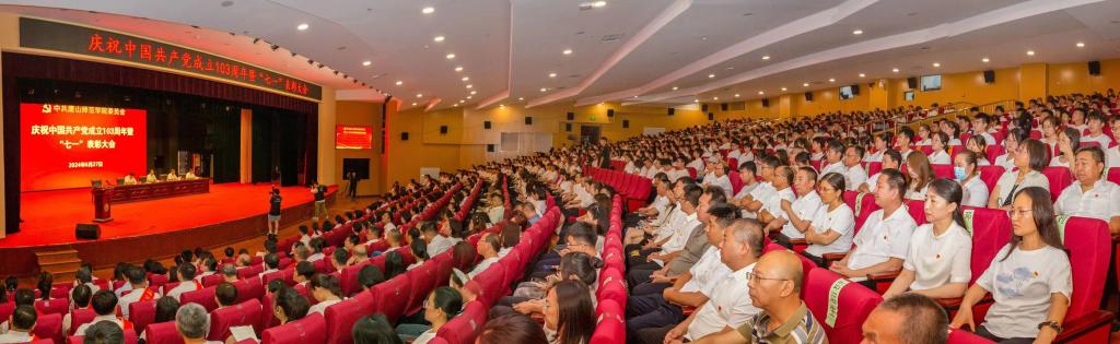 6月27日上午,唐山師范學院在北院文體館隆重舉行慶祝中國共產黨成立103周年暨“七一”表彰大會。黨委書記白春明主持大會并講授黨紀學習教育專題黨課并對全體黨員進行警示教育。黨委副書記、院長孫政,黨委常委、副院長李子林、安文忠出席會議。全體黨員中層干部、教學單位黨員教研室主任、組織員、輔導員、黨支部書記、機關教輔單位全體黨員、新發展黨員、受表彰的個人和集體760余人參加會議。