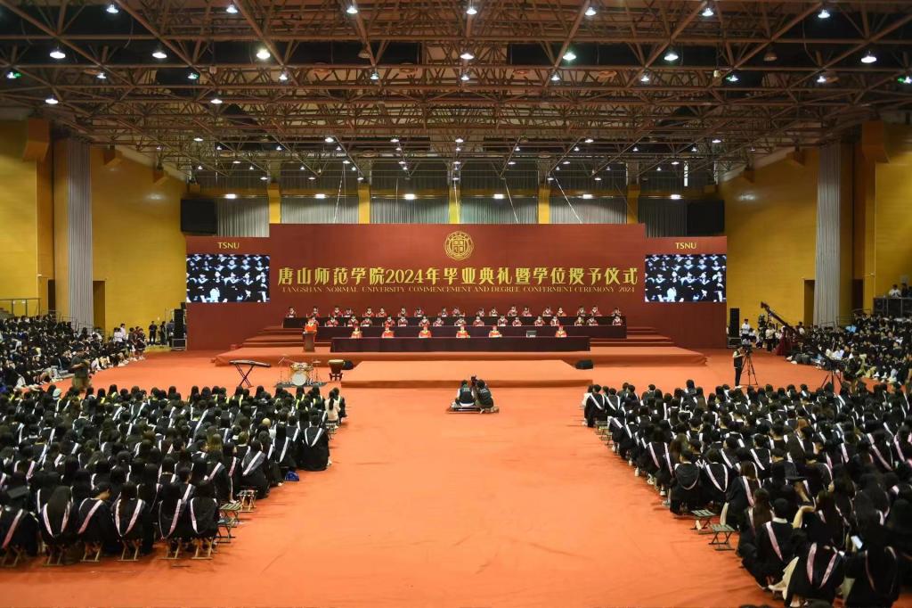 6月14日,唐山師范學院2024年畢業典禮暨學位授予儀式在大學道校區文體館隆重舉行。黨委書記白春明,黨委副書記、院長孫政,黨委常委、副院長李子林,副院長沈玉龍,黨委常委、副院長安文忠,黨委常委、紀委書記孫勝存,黨委常委、副院長王淑娟出席儀式。校領導、學位評定委員會全體委員及機關教輔單位負責人為畢業生撥穗正冠并頒發證書。儀式由安文忠主持。