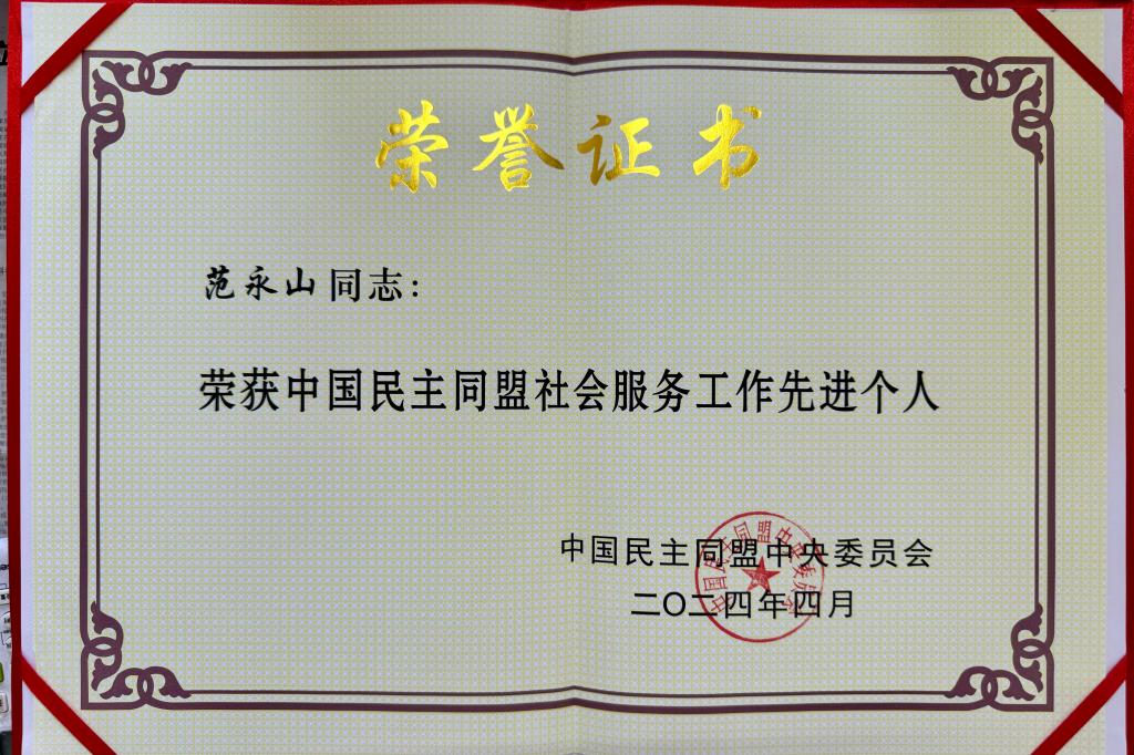 我校范永山教授榮獲中國民主同盟社會服務(wù)工作先進個人