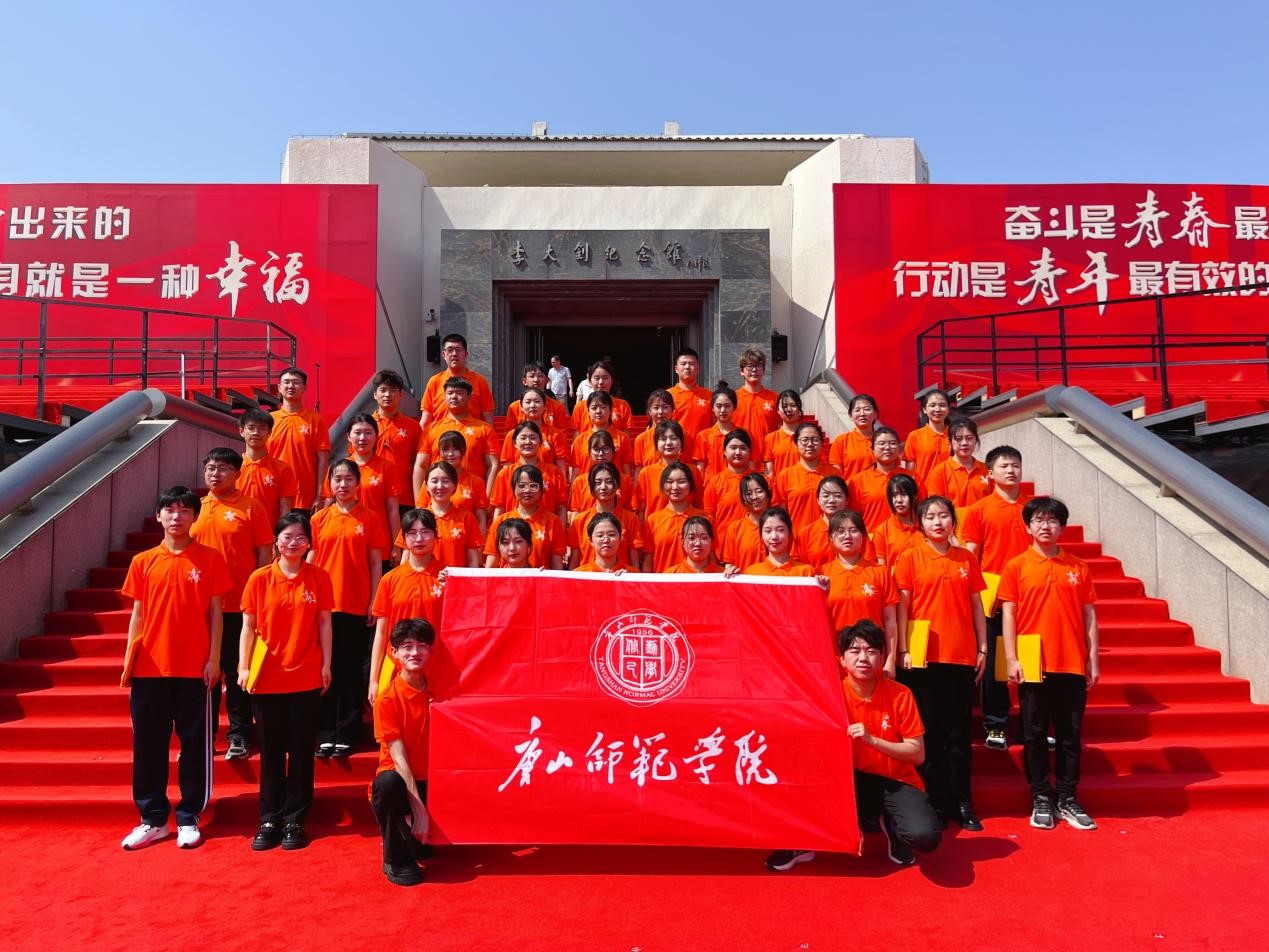 我校學生與北大師生代表、其他唐山市大學生代表、樂亭縣本地機關干部、教師、醫護人員、工人、青年學生等人共同組成朗誦團,齊聚李大釗紀念館,誦讀李大釗先生的《青春》節選。