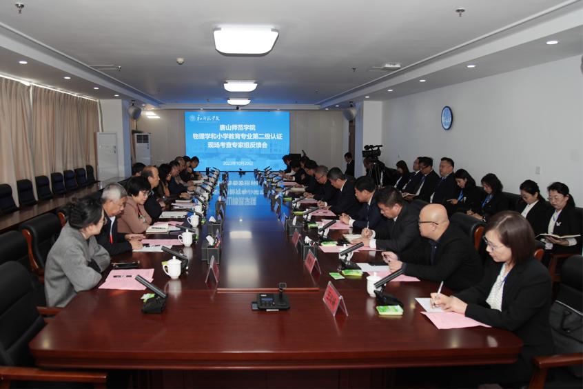 20日上午,專家組現(xiàn)場(chǎng)考查意見(jiàn)反饋會(huì)在大學(xué)道北校區(qū)綜合樓九層第一會(huì)議室舉行。專家組成員,唐山市教育局黨組書(shū)記、局長(zhǎng)史林友、唐山市教育局高教職成處一級(jí)主任科員張冀東、全體校領(lǐng)導(dǎo)出席會(huì)議。學(xué)校相關(guān)職能部門負(fù)責(zé)人,參與認(rèn)證的物理科學(xué)與技術(shù)學(xué)院和教育學(xué)院領(lǐng)導(dǎo)班子成員、專業(yè)負(fù)責(zé)人參加會(huì)議。