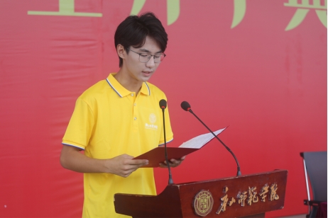 音樂系2023級音樂學一班李世軒、教育學院2023級小學教育專業公費師范生楊子萌代表新生發言。他們表示,全體新同學對即將到來的大學生活充滿期待,2023級全體新同學將在這里發憤圖強,努力學習,完成從稚嫩到成熟的蛻變,享受真正屬于自己的大學校園時光,共同起航人生的新征程。