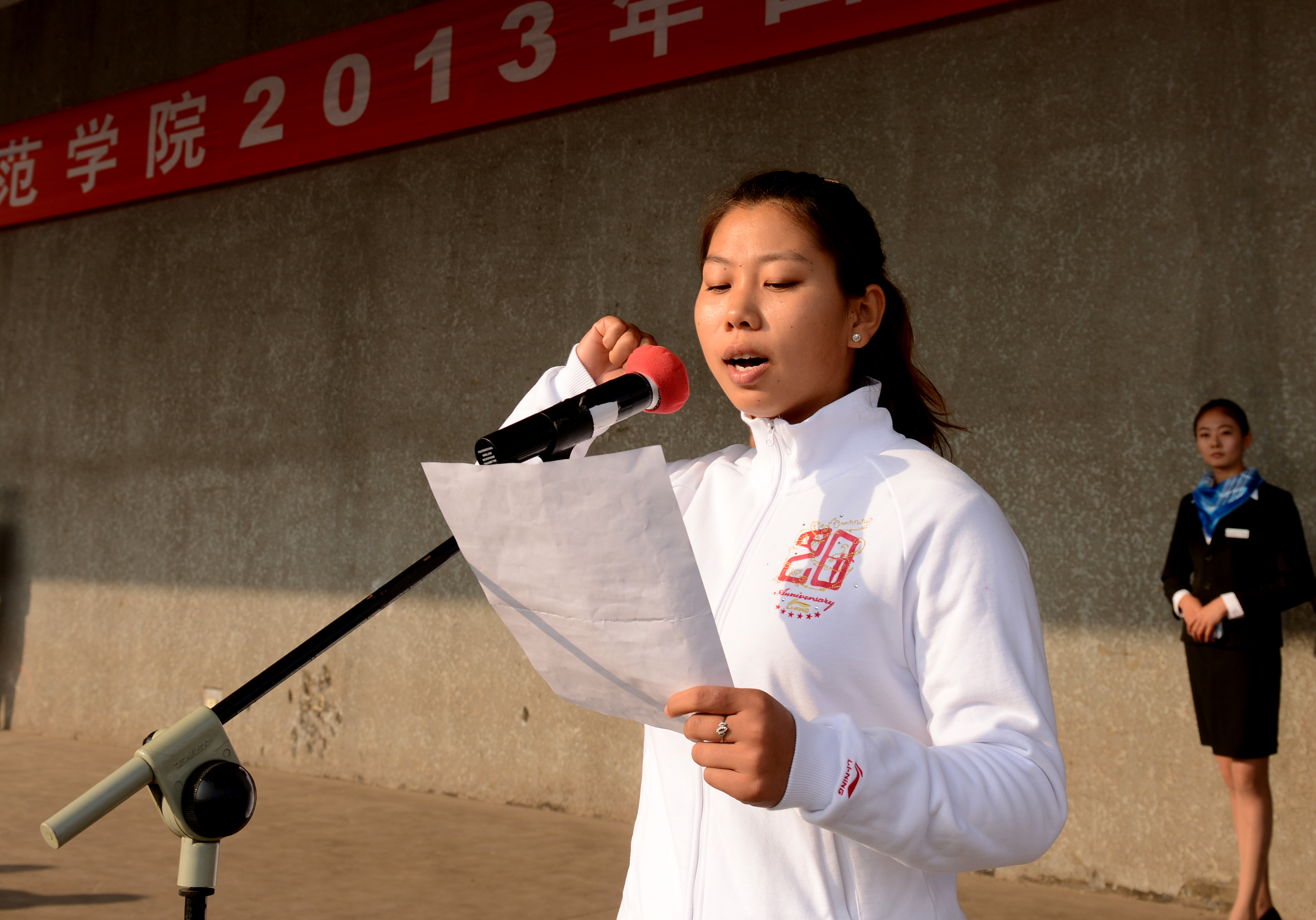 體育系教師云鑫、體育系2010級學生劉洋分別代表全體裁判員、運動員宣誓。