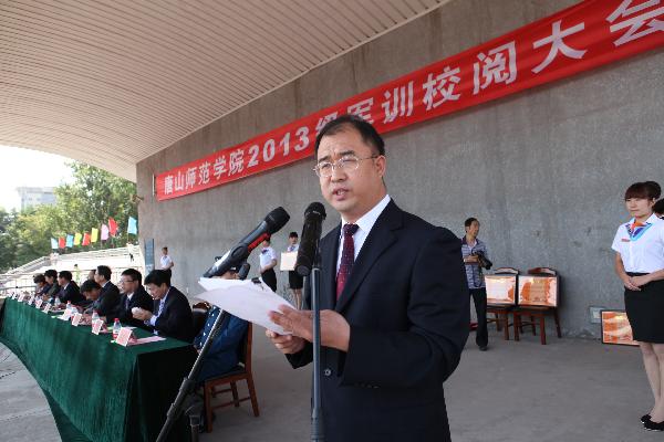 2013年9月15日上午,我校2013級新生軍訓校閱大會分別在大學道校區(qū)和學院路校區(qū)隆重召開。出席大會的領(lǐng)導有我校黨委書記李衛(wèi)中,院長范永勝,黨委副書記趙劍鋒,副院長閻滿富、杜彩芹、孫立軍、客紹英,紀委書記李可君,黨委常委、組織部長邊宏廣,中國人民解放軍93534部隊營教導員潘志剛少校。會議由黨委副書記趙劍鋒主持。