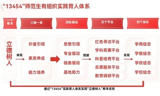 學院堅持以學生為中心,注重學生創新能力和綜合素養的培養,將第一課堂與第二課堂有機融合,構建了“13454”有組織實踐育人體系:堅持“一個根本”,立德樹人根本任務;體現“三維一體”育人目標,價值引領、素質養成、能力培養;通過“四輪驅動”,思想引領、專業驅動、鏈條驅動、基地助力;搭建“五個平臺”,即紅色尋訪平臺、學科競賽平臺、科普培育平臺、志愿服務平臺和教育調研平臺;實現“四個結合”,即學用結合、學做結合、學改結合、學創結合。在推動第一課堂、第二課堂相互貫通、協同發力,實現實踐育人組織化、專業化、品牌化的同時,青年學生在實踐中政治認同感、社會責任感、職業道德、職業核心素養和能力得到了有效提高,助力學生全面發展。