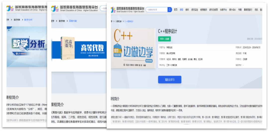 2022年,《高等代數》《數學分析》《C++程序設計》3門課程入選首批國家智慧教育平臺課程,截止到現在,三門課程累計選課人數超過12000人次,覆蓋300余所高校,課程影響力持續擴大。2025年獲批24項校級課程建設項目,為課程資源迭代升級提供保障。
