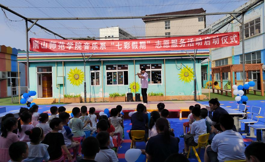 6月27日,音樂系“情系童心,益起同行”志愿服務隊來到唐山市路北區幸福搖籃特殊教育培訓學校開展“七彩假期”活動啟動儀式。音樂系主任張志偉,正處級輔導員王洋,輔導員佟宇、紀文文和8名學生志愿者參加活動。