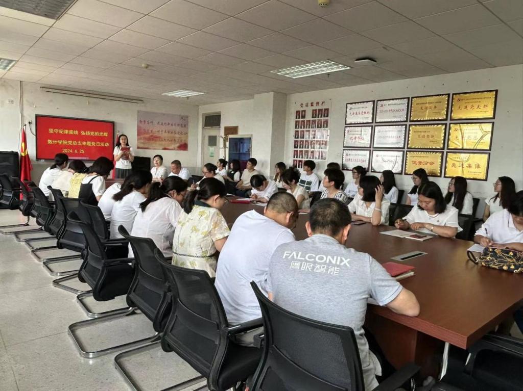 數(shù)學(xué)與計(jì)算科學(xué)學(xué)院黨總支書記檀艷以《學(xué)條例明規(guī)矩強(qiáng)黨性》為題講授黨課,強(qiáng)調(diào)紀(jì)律建設(shè)在黨的建設(shè)新的偉大工程中的重要地位,要求全體黨員增強(qiáng)“四個(gè)意識(shí)”,堅(jiān)定“四個(gè)自信”,做到“兩個(gè)維護(hù)”,自覺抵制各種誘惑,嚴(yán)守黨的紀(jì)律規(guī)矩,保持清正廉潔的政治本色。