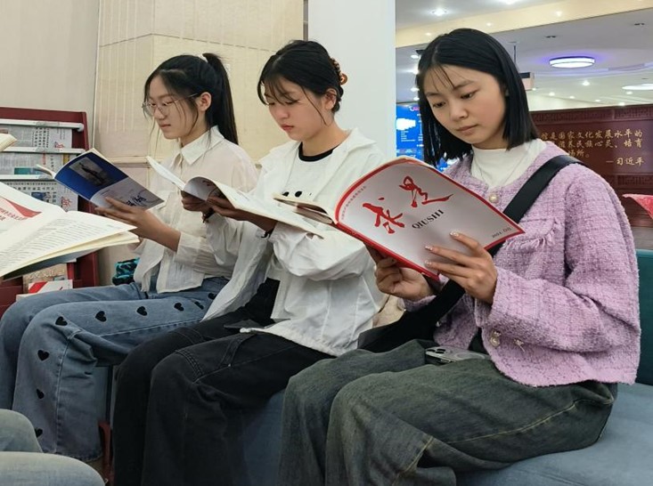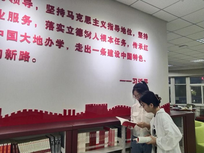 活動過程中,同學們在閱讀角閱讀《求是》等紅色雜志,感受書籍帶來的力量。隨后大家走到了學校圖書館的習近平書籍專區,習近平總書記的話語激勵著青年學子奮發圖強。同學們在朗讀亭朗讀了詩詞歌賦,感悟《沁園春·雪》的豪情壯志,感悟大自然的磅礴大氣,學習在生活和事業中勇敢面對挑戰的精神。