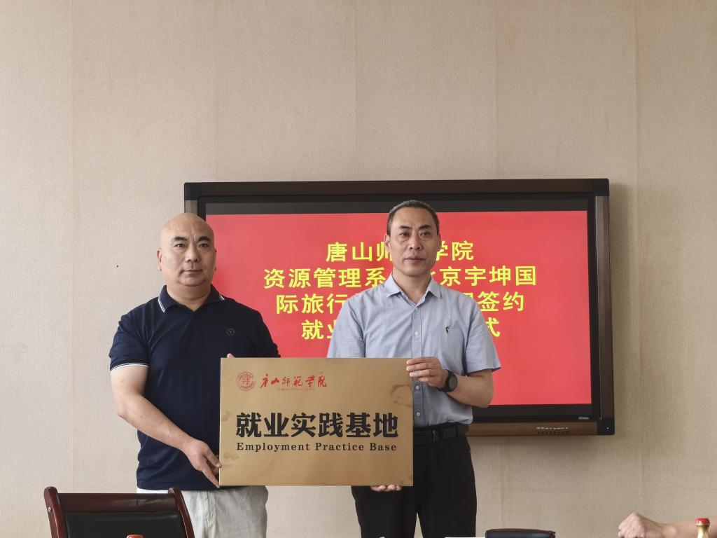 5月18日,資源管理系黨總支書記馬作東和系主任沈方與北京宇坤國際旅行社有限公司靳惠澤總經理進行了充分交流,了解了單位用工需求,介紹資源管理系專業特色、畢業生能力及工作訴求。雙方溝通順暢,達成了合作意向,并舉行了“唐山師范學院就業實踐基地”掛牌儀式。