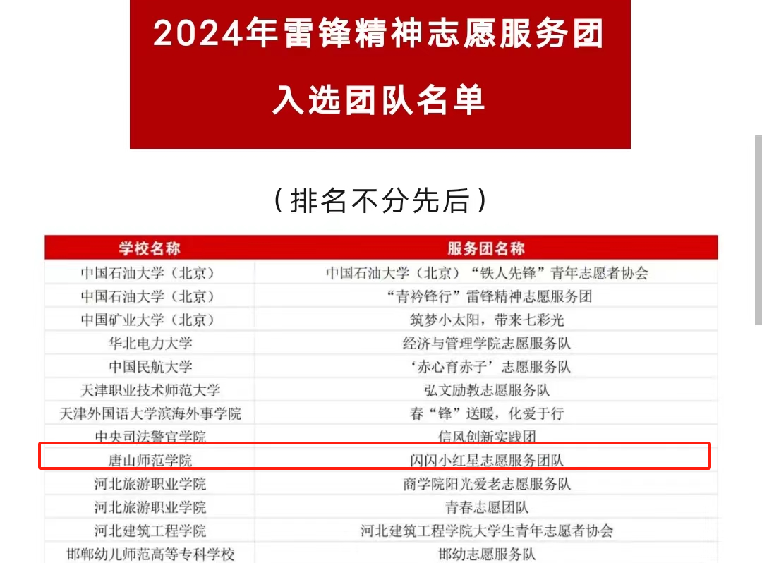 近日,雷鋒雜志社聯合各地雷鋒紀念館、到夢空間以及各高校相關部門共同開展2024年“弘揚新時代雷鋒精神,投身新征程志愿服務”第二課堂系列公益講座高校成果展示收集。本次活動得到了全國高校志愿服務團隊的廣泛關注和積極參與,唐山師范學院物理科學與技術學院閃閃小紅星志愿服務團隊成功入選。