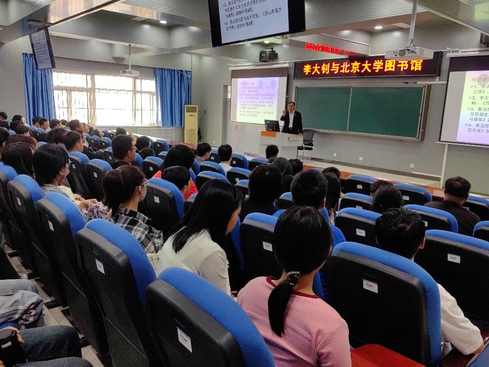 4月18日下午,讀書節(jié)文化大講堂在圖書館學(xué)術(shù)報(bào)告廳開講,圖書館副館長(zhǎng)、中文系兼職教授周進(jìn)良作題為《李大釗與北京大學(xué)圖書館》的主題講座,歷史文化與法學(xué)系學(xué)生150余人參加了講座。
