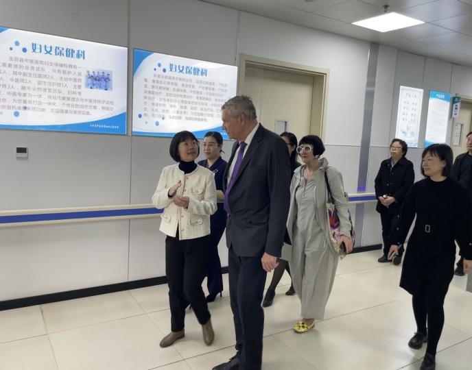 4月7日,德國卡耶維茨基金會長與柏林愛思學校校長應邀來到玉田縣參觀考察,玉田縣委書記田軍威等領導接待考察。考察組一行先后參觀了玉田高鐵新城醫院項目,唐山清任中西醫結合醫院,玉田縣光榮康養院以及玉田縣文化館,就中德合作發展理念,合作方式等內容與玉田縣政府工作人員進行了深入的探討。在此期間,我校外國語學院德語教師郭淑敏作為翻譯工作人員全程跟進,完成了前期外宣資料翻譯、外賓接待、會議口譯和隨同翻譯等工作。郭老師高質量的翻譯服務得到中德雙方領導的一致認可。