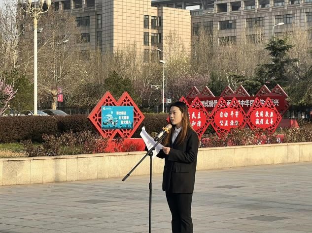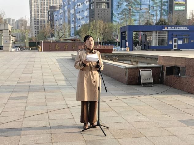 學生代表孫搏揚號召同學們要繼承和發揚革命先輩的光榮傳統,勇立潮頭、奮楫篤行,讓青春在全面建設社會主義現代化國家的火熱實踐中綻放絢麗之花,為實現中華民族偉大復興的中國夢而努力學習、銳意進取。