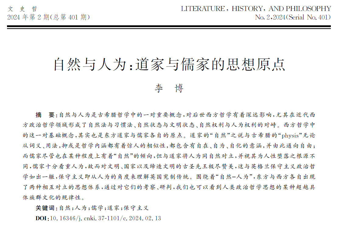 近日,馬克思主義學院李博博士撰寫的文章發表于《文史哲》2024年第02期。