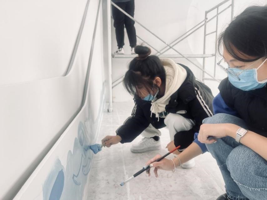 為更好地推進產教城深度融合,3月28日上午,學校下沉基層干部和美術學院教師帶隊,組織學生前往遵化市蘇家洼鎮人民政府,開展了一場別開生面的墻繪活動。師生們以碧海藍天為主題,共同用畫筆在墻壁上描繪出了一幅充滿生機與活力的新畫卷。