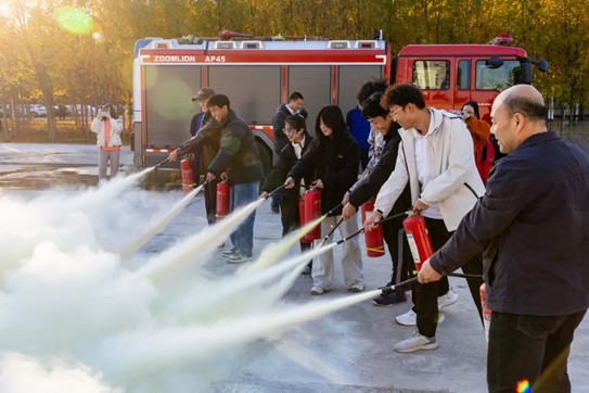 接著,消防大隊的同志們給大家詳細講解了滅火器的使用方法和注意事項,并拿起滅火器對著模擬火源進行了現場演示,火焰在噴射中迅速熄滅,引來師生們的一片掌聲和歡呼聲。隨后,同學們紛紛上前,親身體驗滅火器的使用方法。在消防員的耐心指導下,每個人都認真地按照步驟操作著。消防員還向大家展示了其他消防器材的使用方法,如消防栓的操作、消防救援裝備的穿戴等。同學們爭先恐后地上前體驗,仿佛置身于真實的火災救援現場,感受著消防員工作的艱辛與偉大。