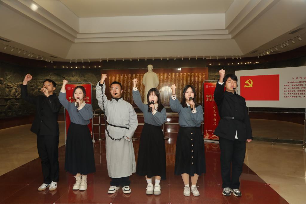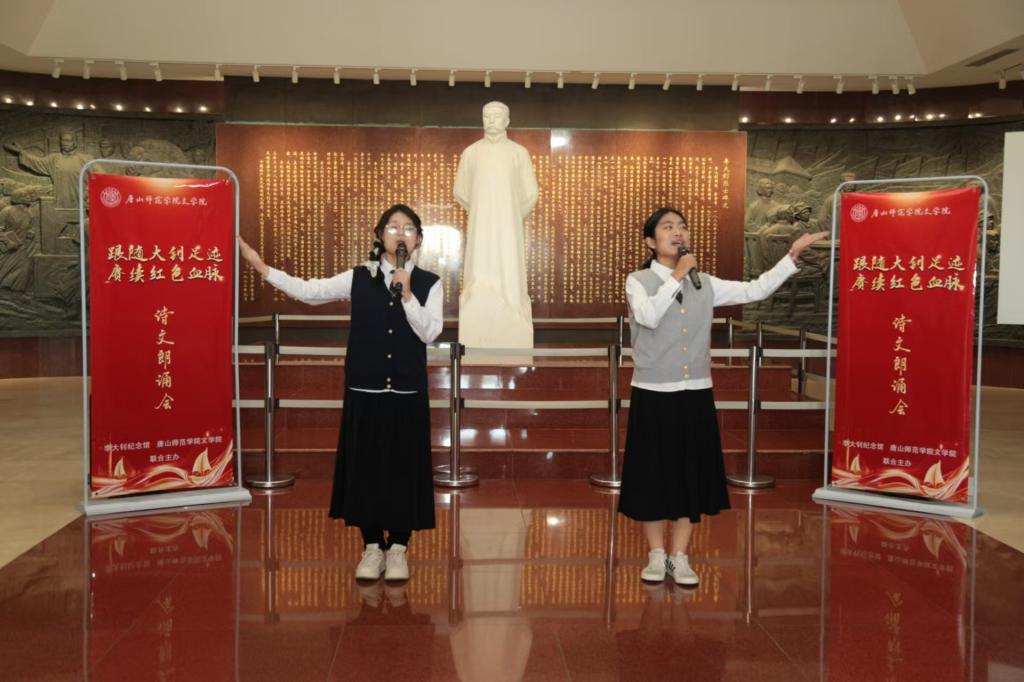 今年是新中國(guó)成立75周年、李大釗誕辰135周年,為此唐山師范學(xué)院文學(xué)院黨總支聯(lián)合李大釗紀(jì)念館,于12月8日成功舉辦了以“跟隨大釗足跡 賡續(xù)紅色血脈”為主題的創(chuàng)新型黨課——將紅色主題朗誦節(jié)目帶到李大釗紀(jì)念館的瞻仰大廳。文學(xué)院師生黨員和入黨積極分子40余人與紀(jì)念館10余名黨員工作人員共同參加了活動(dòng)。