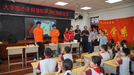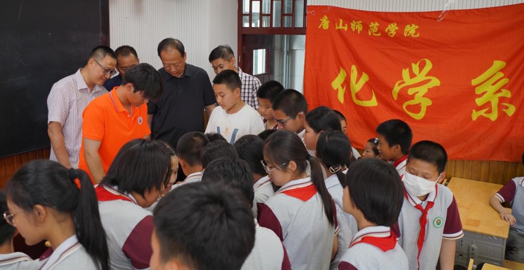 在“六一”國際兒童節來臨之際,唐山師范學院化學系“助燃童心”科普志愿服務隊在系主任于靜、副處級輔導員郭小松、團總支書記谷峪老師的帶領下,于5月30日走進唐馬路小學,為學校一至六年級1100余名學生帶來了一場別開生面的“慶六一·科學游園”活動。本次活動旨在通過趣味化學實驗,激發小學生對科學的濃厚興趣,培養青少年探索精神,啟迪孩子們的創新思維,播撒科學種子,生動詮釋了高校教育資源服務地方基礎教育的深度實踐。