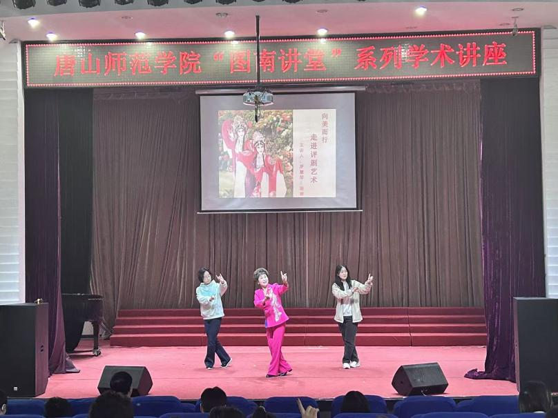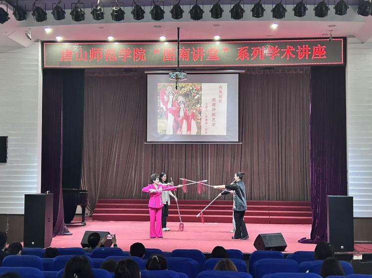 為弘揚(yáng)中華優(yōu)秀傳統(tǒng)文化,豐富校園文化生活,提升師生藝術(shù)素養(yǎng),4月1日下午,由音樂(lè)系承辦的題為“向美而行,走進(jìn)評(píng)劇藝術(shù)”——唐山師范學(xué)院“圖南講堂”成功舉行,講座特邀國(guó)家一級(jí)演員、中國(guó)戲劇梅花獎(jiǎng)獲得主羅會(huì)芹(羅慧琴)老師與唐山師范學(xué)院評(píng)劇文化研究中心楊南老師聯(lián)袂主講。兩位老師通過(guò)系統(tǒng)講解與現(xiàn)場(chǎng)展示,帶領(lǐng)師生沉浸式感受評(píng)劇藝術(shù)的獨(dú)特魅力。