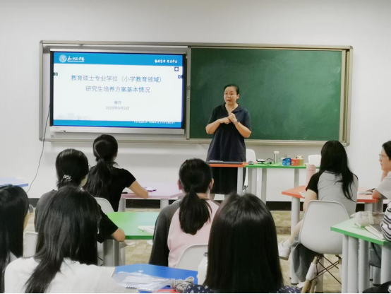 9月2日晚,秦丹院長對2025級小學教育領域研究生培養(yǎng)方案進行了細致解讀,幫助同學們了解學習目標、課程體系、實踐內容及學習方法,對如何順利完成研究生期間的學習提出了意見和建議。
