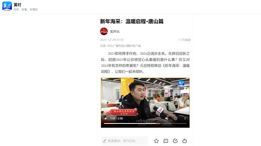 我校學子在河北新聞聯播、冀時媒體平臺為大家送新年祝福。