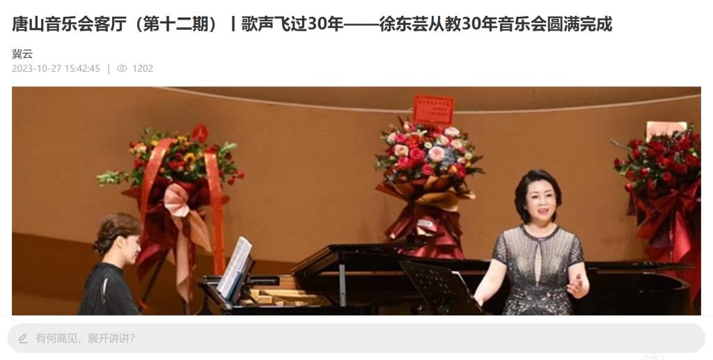 10月24日,由唐山大劇院與唐山師范學(xué)院音樂(lè)系聯(lián)合打造的唐山音樂(lè)會(huì)客廳第十二期“歌聲飛過(guò)30年——徐東蕓從教30年”音樂(lè)會(huì)在唐山大劇院舉行。
