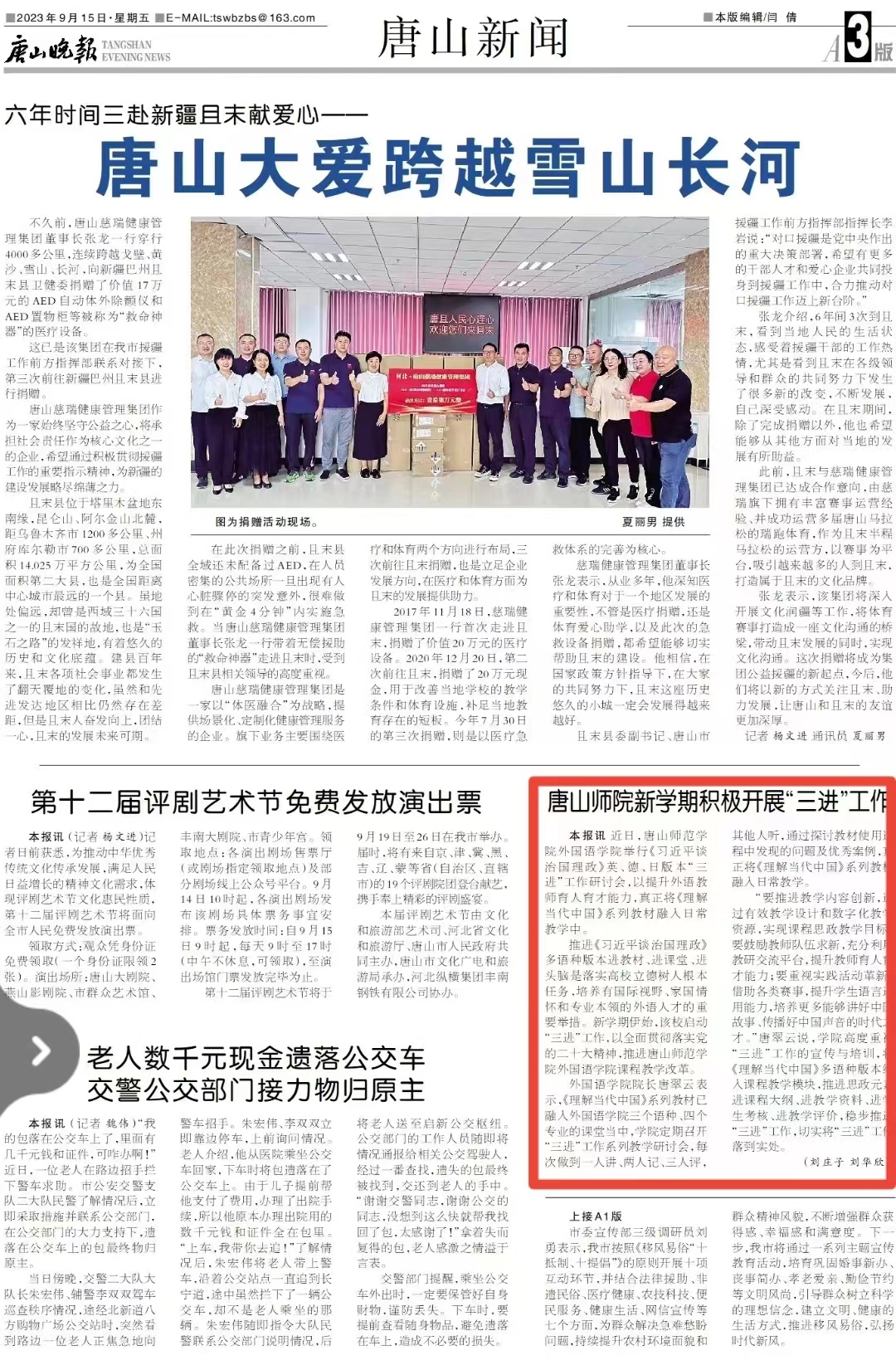 《唐山晚報》——唐山師院新學期積極開展“三進”工作