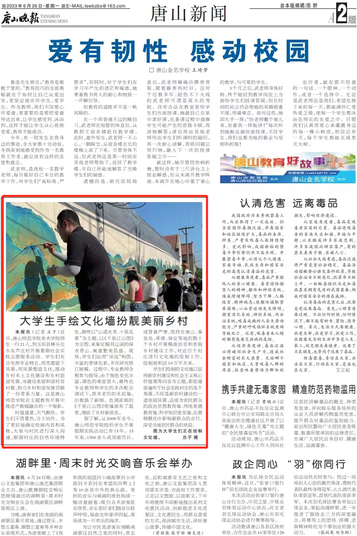 《唐山晚報》——大學生手繪文化墻扮靚美麗鄉村