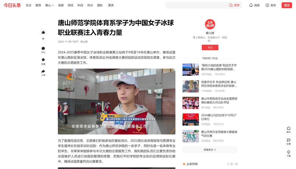 2024-2025賽季中國女子冰球職業聯賽第三站將于11月9號至16號在唐山舉辦,賽場設置在唐山高新區滑冰館,體育系派出36名具備大賽經驗的運動員級別志愿者,參與此次大賽的志愿服務工作。
