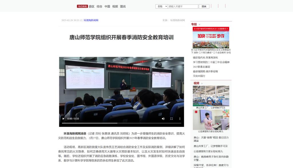 為進一步增強師生的消防安全意識,提高火災防范和逃生自救能力,2月27日,唐山師范學院組織開展2025年春季消防安全教育培訓。