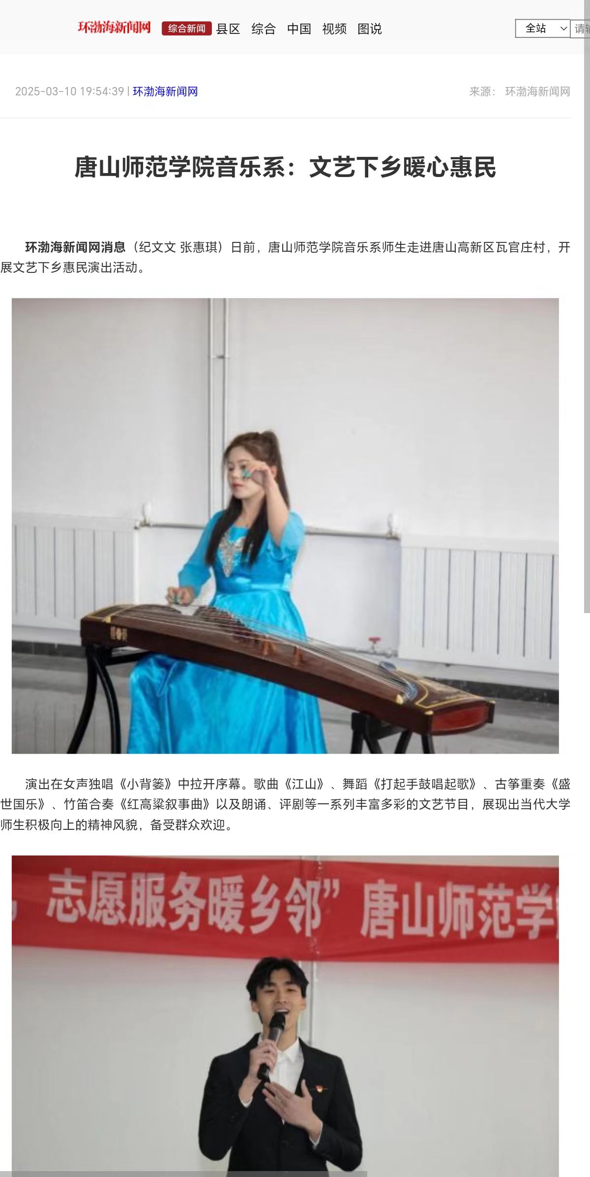 《環(huán)渤海新聞網(wǎng)》《唐山Plus》——唐山師范學(xué)院音樂系:文藝下鄉(xiāng)暖心惠民